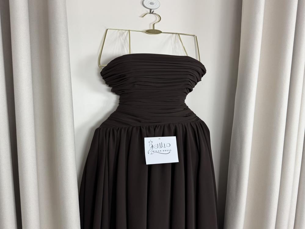 * اسم الفستان : سيلا* اللون : بني* إرشادات الغسيل : يُغسل ويكوي بالبخار وبدرجة حرارة منخفضة .* طريقة القياس :الصدر ، الخصر ، الورك .استخدمي شريط قياس قماشي يمكن شده حول جسمك لقياس دقيق .
