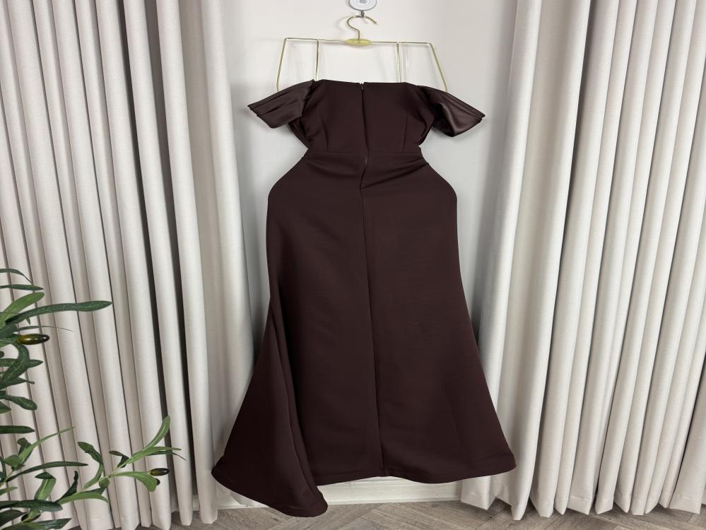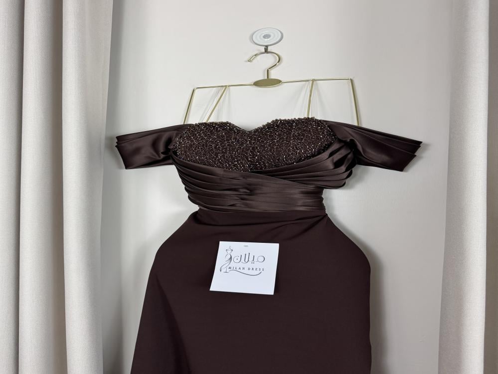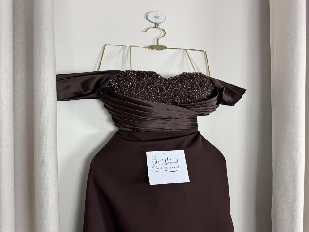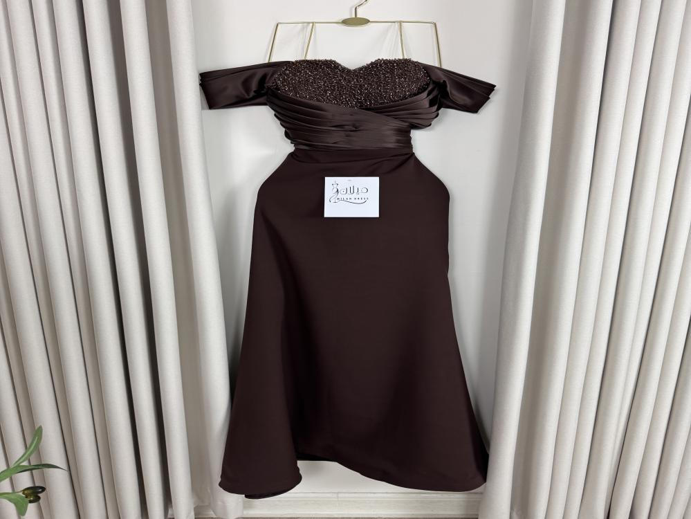 * اسم الفستان : لمى* اللون : بني* إرشادات الغسيل : يُغسل ويكوي بالبخار وبدرجة حرارة منخفضة .* طريقة القياس :الصدر ، الخصر ، الورك .استخدمي شريط قياس قماشي يمكن شده حول جسمك لقياس دقيق .