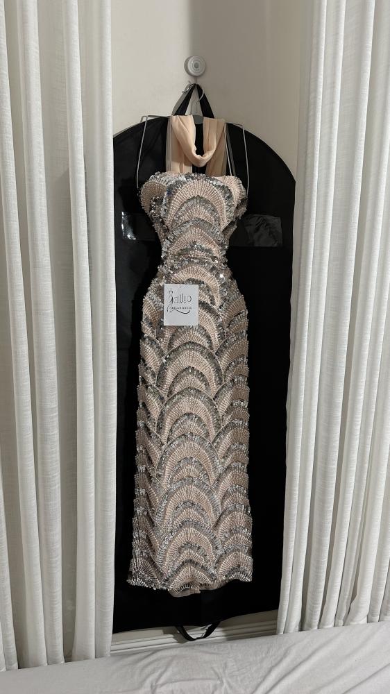 * اسم الفستان : ملكه* اللون : بيج* إرشادات الغسيل : يُغسل ويكوي بالبخار وبدرجة حرارة منخفضة .* طريقة القياس :الصدر ، الخصر ، الورك .استخدمي شريط قياس قماشي يمكن شده حول جسمك لقياس دقيق .