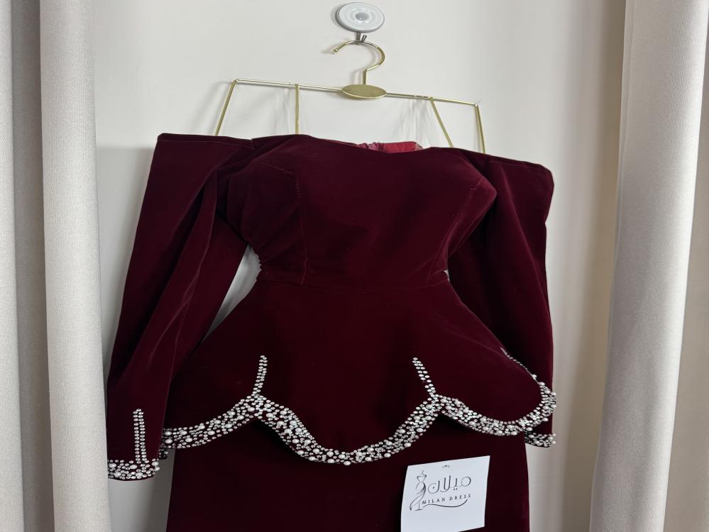 * اسم الفستان :ياسمين * اللون : عودي*طول الفستان : طويل*نوع القماش : مخمل* إرشادات الغسيل : يُغسل ويكوي بالبخار وبدرجة حرارة منخفضة .* طريقة القياس :الصدر ، الخصر ، الورك .استخدمي شريط قياس قماشي يمكن شده حول جسمك لقياس دقيق .
